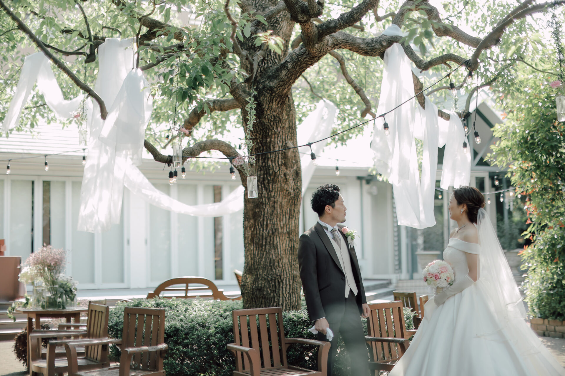 レストランと行き来可能な花と緑あふれるガーデンでは、BBQやデザートブッフェのようなゲストと共に楽しめる演出など、おふたりのやりたいことを叶えて。